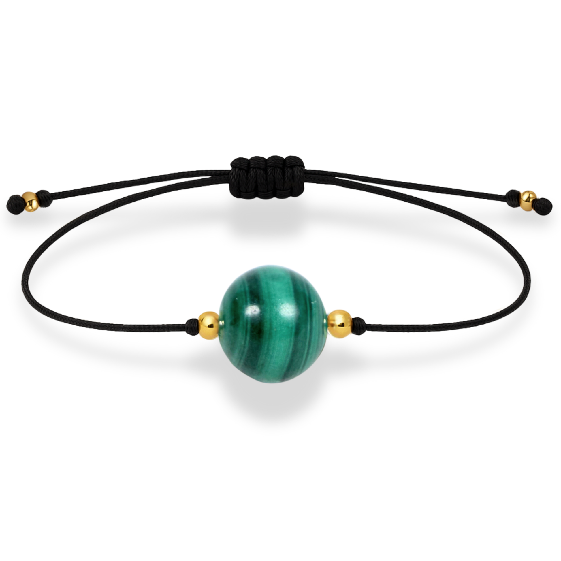 Add a touch of luxury, elegance, and good fortune with our minimalist malachite bracelet. The delicate combination of nylon thread with 18k gold-plated details creates a sophisticated yet modern look. The malachite gemstone complements this piece, adding a touch of good luck and charisma to your style. A spectacular gift for yourself or someone special.