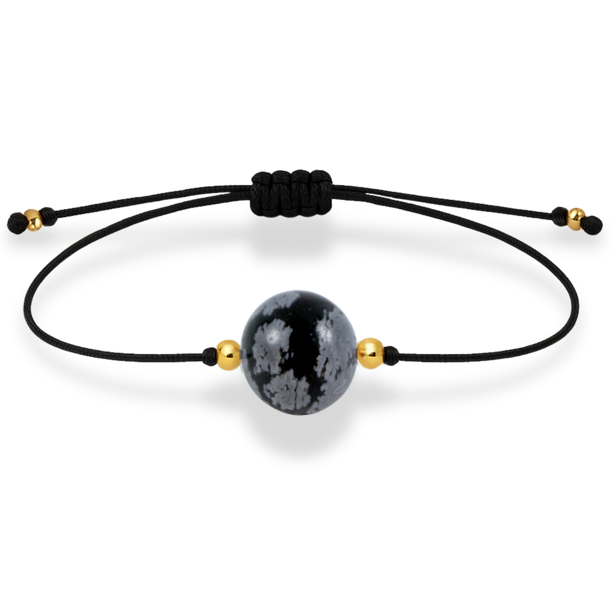 Exquisitely designed for those who appreciate minimalist style, this nylon cord bracelet adorned with 18K gold-plated details will enchant lovers of elegance. Perfected with a single Snowflake Obsidian stone, this bracelet exudes a mysterious aura for those who wear it. A unique and irresistible piece of jewelry for lovers of sophisticated fashion.