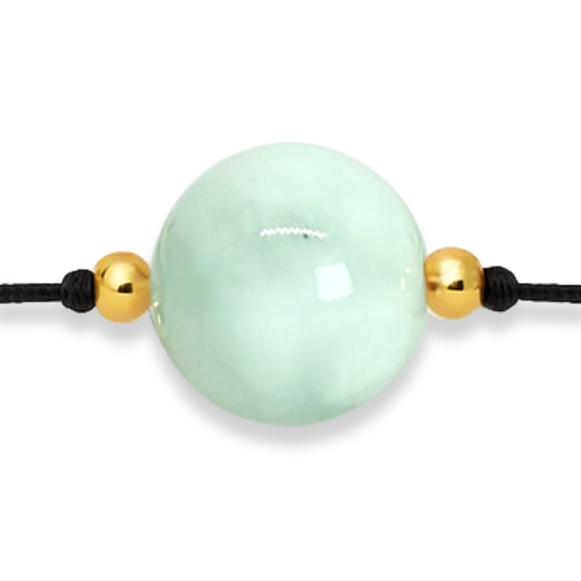 Appréciez la paix et la sérénité avec ce magnifique bracelet minimaliste en angélite verte. Tissé à la main avec du fil de nylon, ce bracelet met en valeur une délicate pierre d'angélite verte naturelle, délicatement sertie de perles plaquées or 18 carats. Symbole de paix et de sérénité, il deviendra sans aucun doute une pièce unique et précieuse de votre collection.