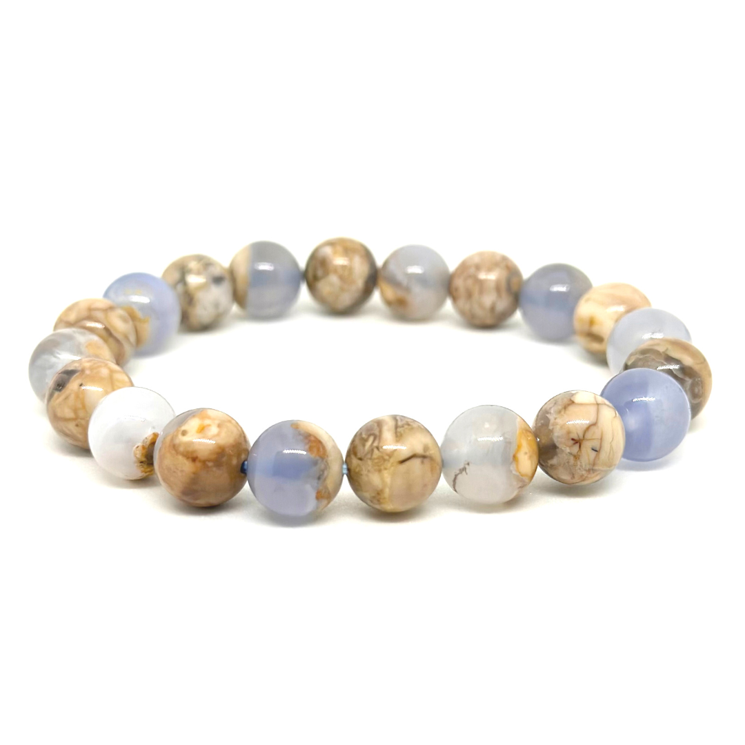 Inspirada por la naturaleza, esta pulsera con una piedra calcedonia de ángel representa la confianza en sí mismo. Una preciosa joya para llevar contigo todo el día. Una declaración de poder, una proclamación de auto confianza. Una pieza íntima para llevar su energía contigo.