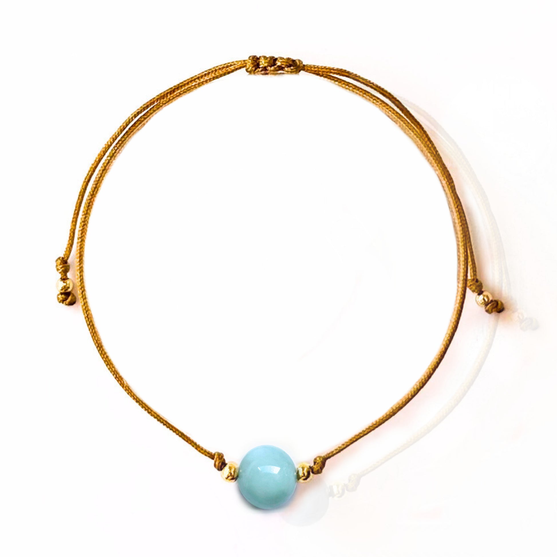 Disfruta de la paz y la tranquilidad con la hermosa pulsera minimalista de Angelita Verde. Tejida artesanalmente con hilo de nylon, esta pulsera lleva una delicada gema de Angelita Verde natural suavemente envuelta por balines chapados en oro 18k. Este símbolo de paz y serenidad seguramente se convertirá en una pieza única y especial en tu colección.