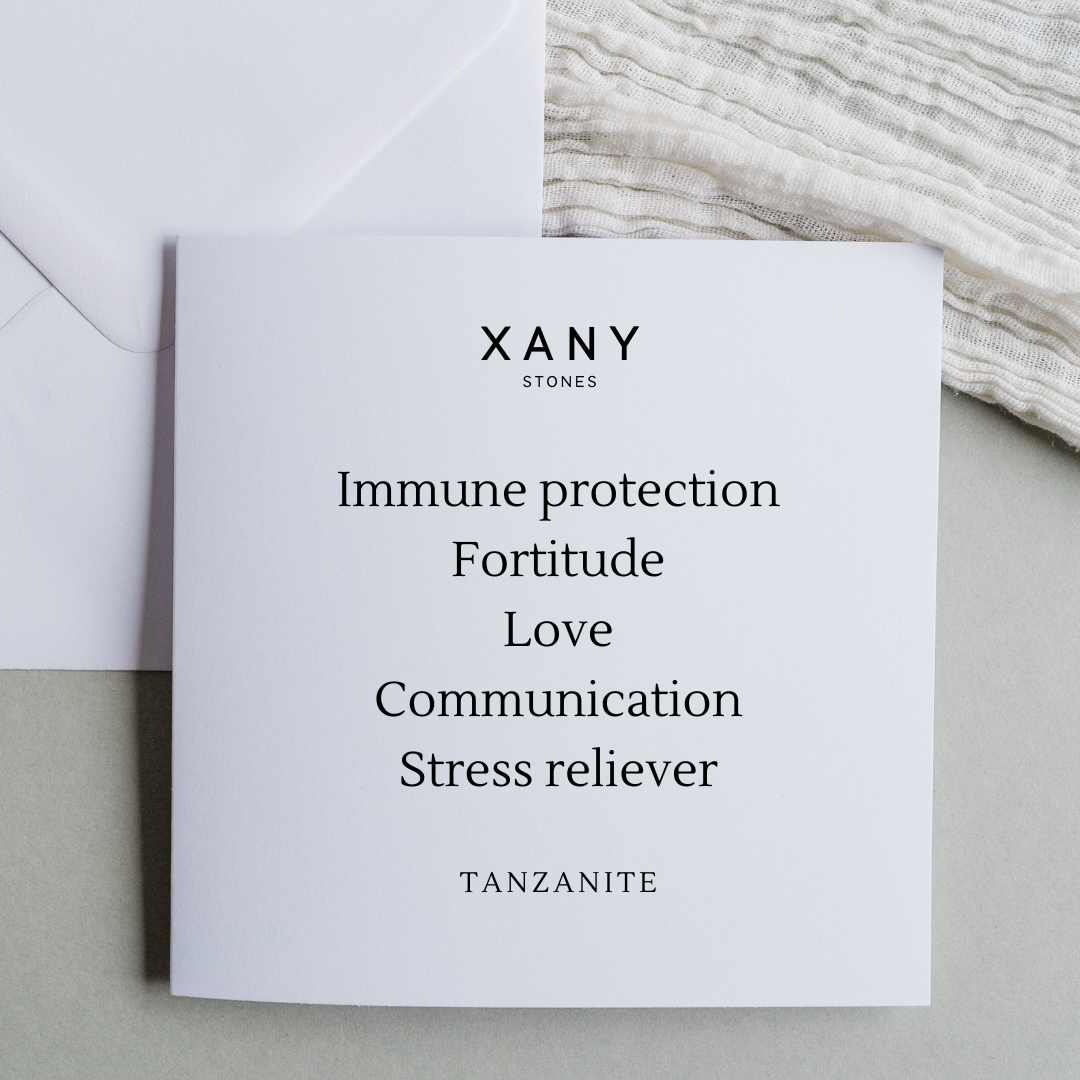 Se dice que la tanzanita es una piedra que favorece la elevación de la conciencia y que resulta muy útil para meditar y fortalecer la capacidad perceptiva y la intuición.